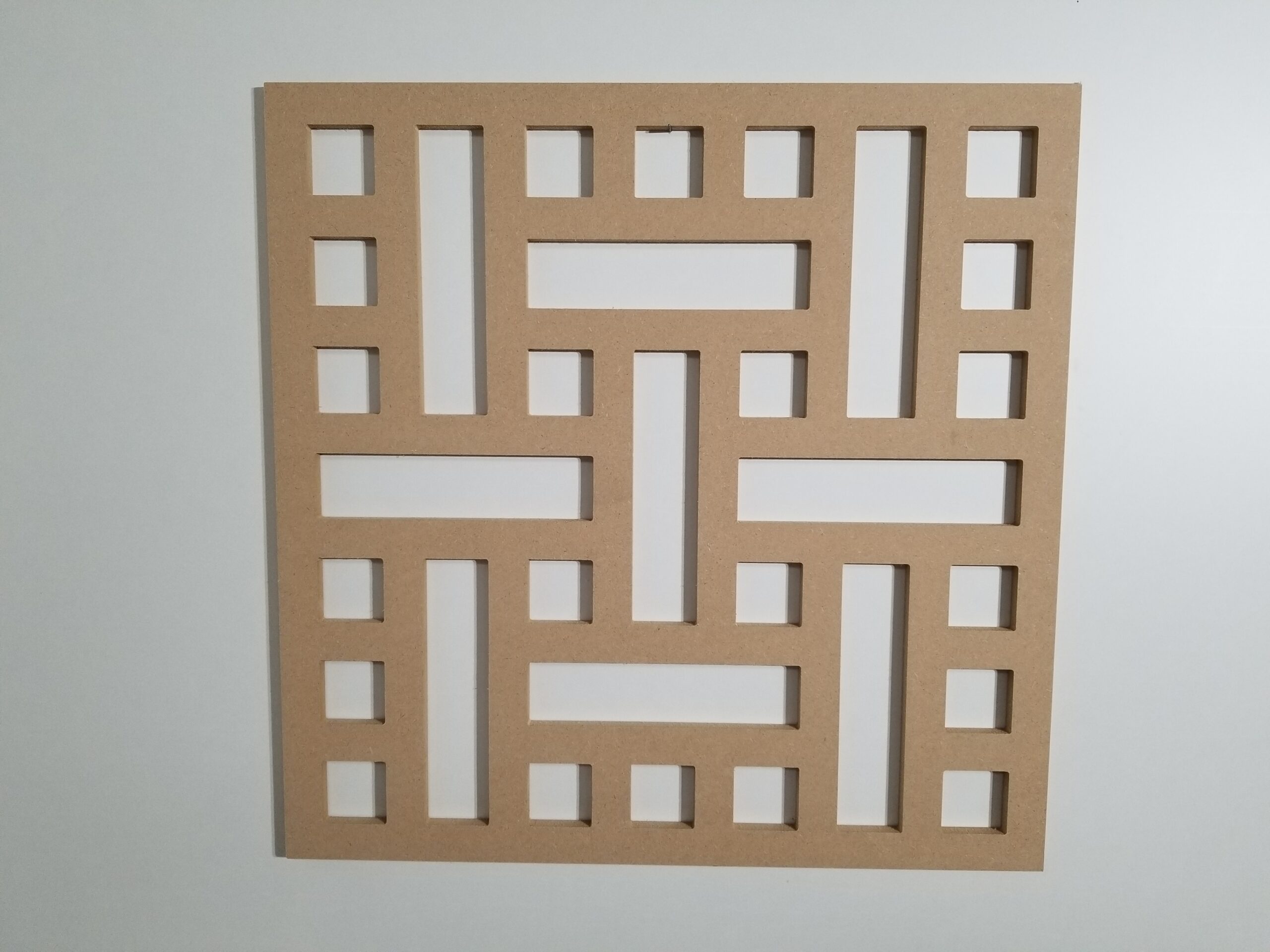 - MDF: Dimensions: 57 cm x 57 cm x 6 mm